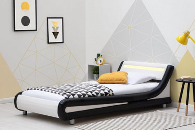 Barcelona Black/White Faux Leather LED Headboard Single Bed Frame 3ft
